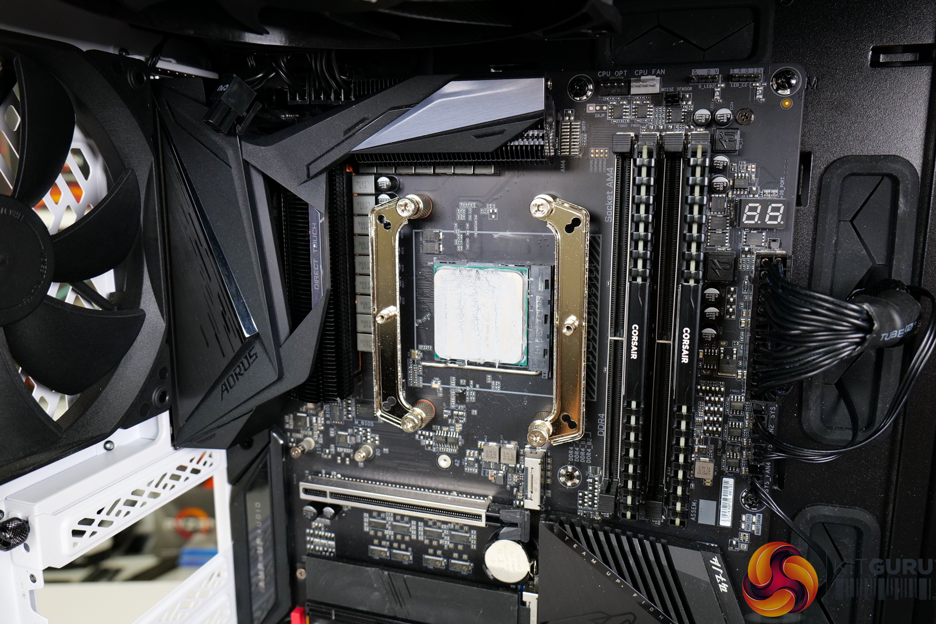 The cooler is then sat atop the pasted CPU in its position.