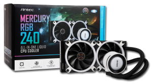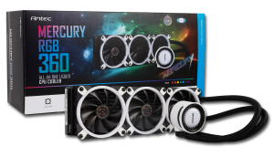 Antec is revamping its all-in-one liquid cooling lineup this week with the introduction of the new Mercury RGB series. The latest Mercury AIOs come with RGB lighting, just as the name suggests, and will be available in three sizes, with 120mm, 240mm and 360mm radiator options.