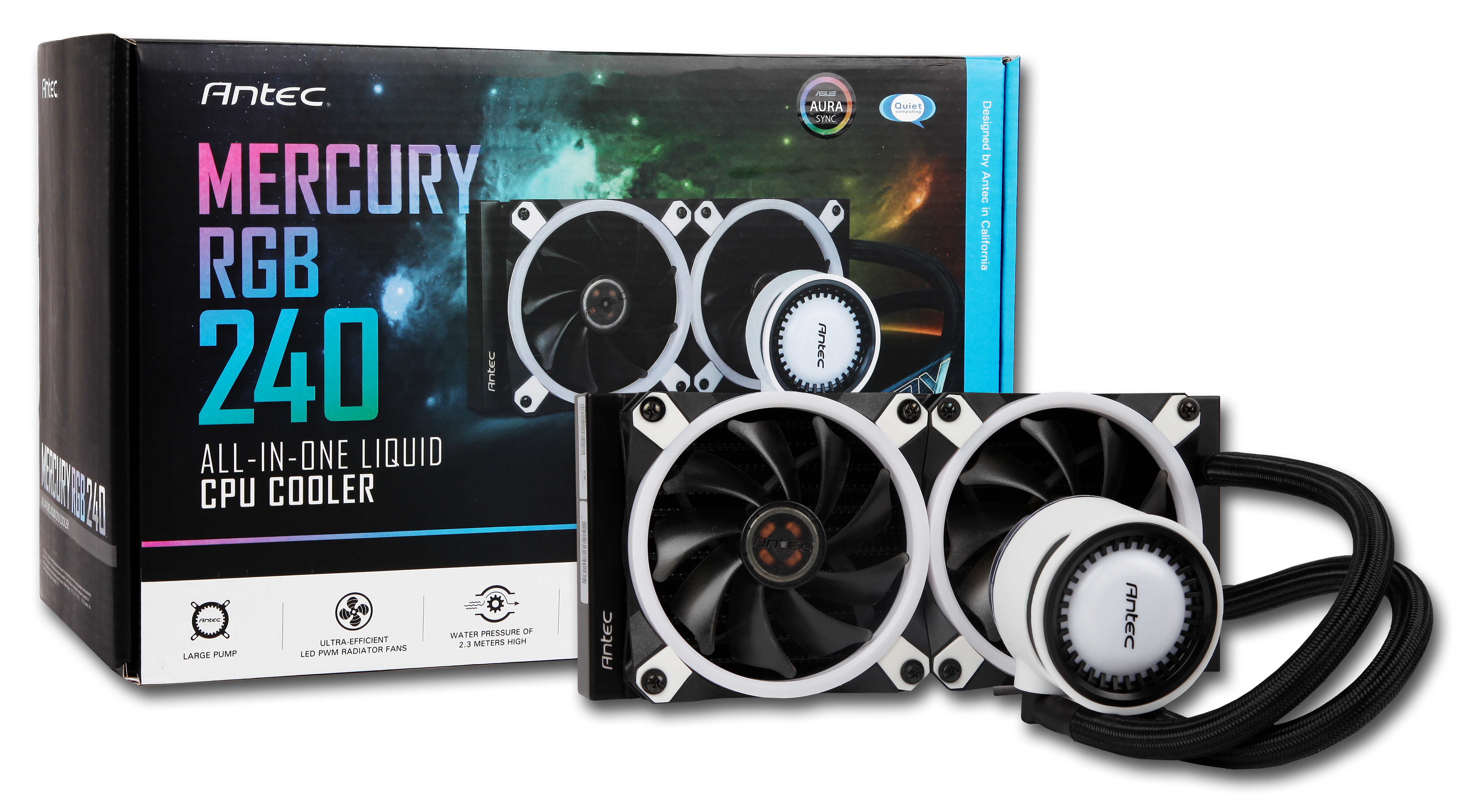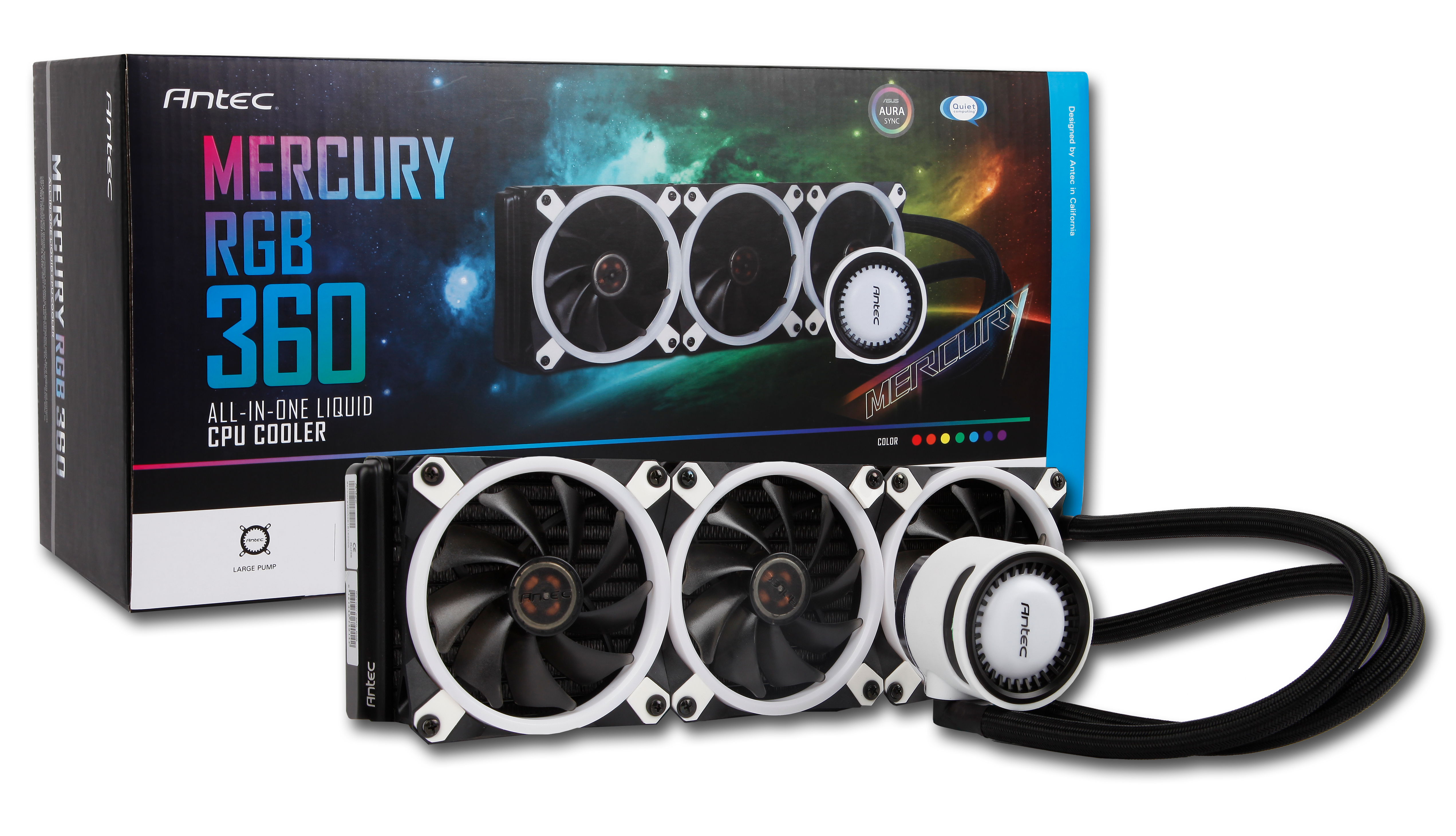 The Mercury RGB series is equipped with non-lubricated graphite bearings and a ceramic axis in a carbon-metal construction. Essentially, they should be built to stand the test of time. Each AIO comes with a PWM RGB LED fan that can be directly synced via a motherboard connection, or through an integrated RGB hub.