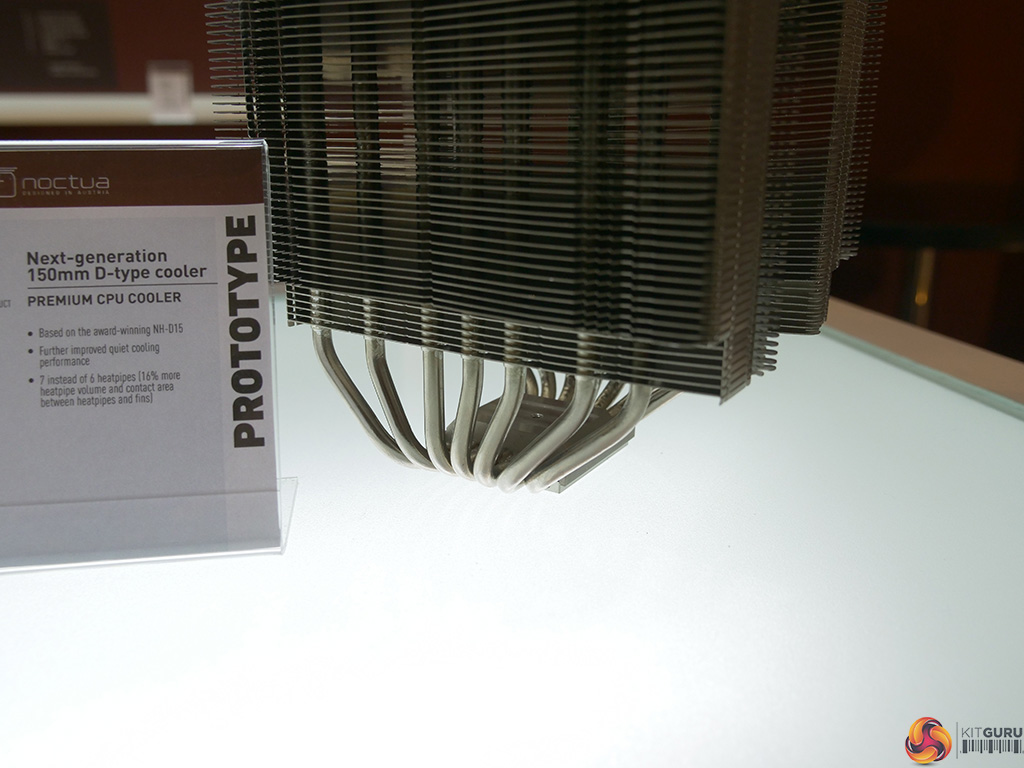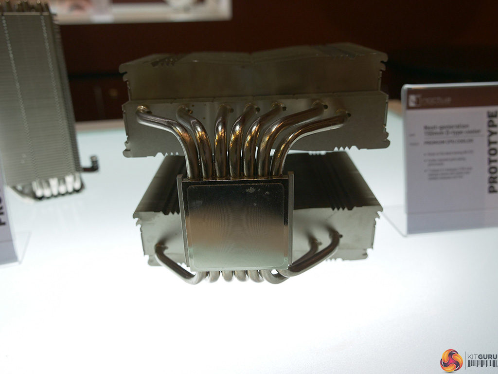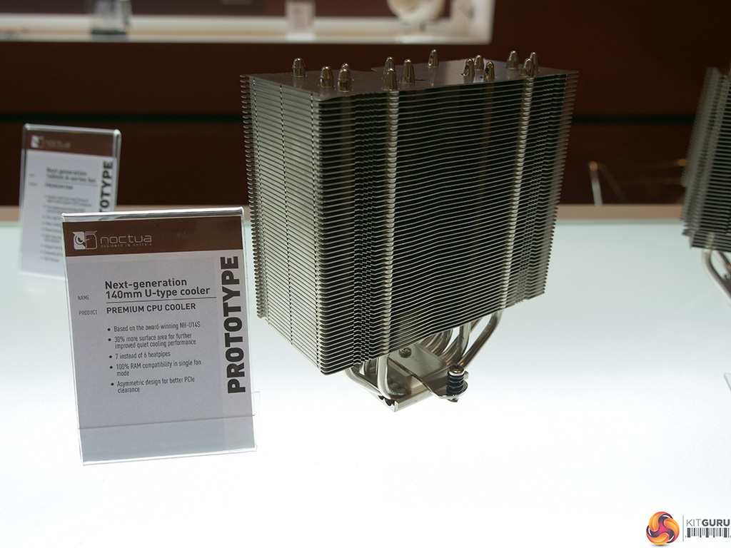The first cooler we saw is currently known as ‘prototype C' and is based on the current NH-C14S cooler. With this new version Noctua is focussing on providing better motherboard clearance, and more room for taller RAM. The second cooler is known as ‘prototype U' and is based on the NH-U14S. For this one, Noctua has decided to beef up the cooling functionality, adding a seventh heatpipe to the design and providing 30 percent more surface area.