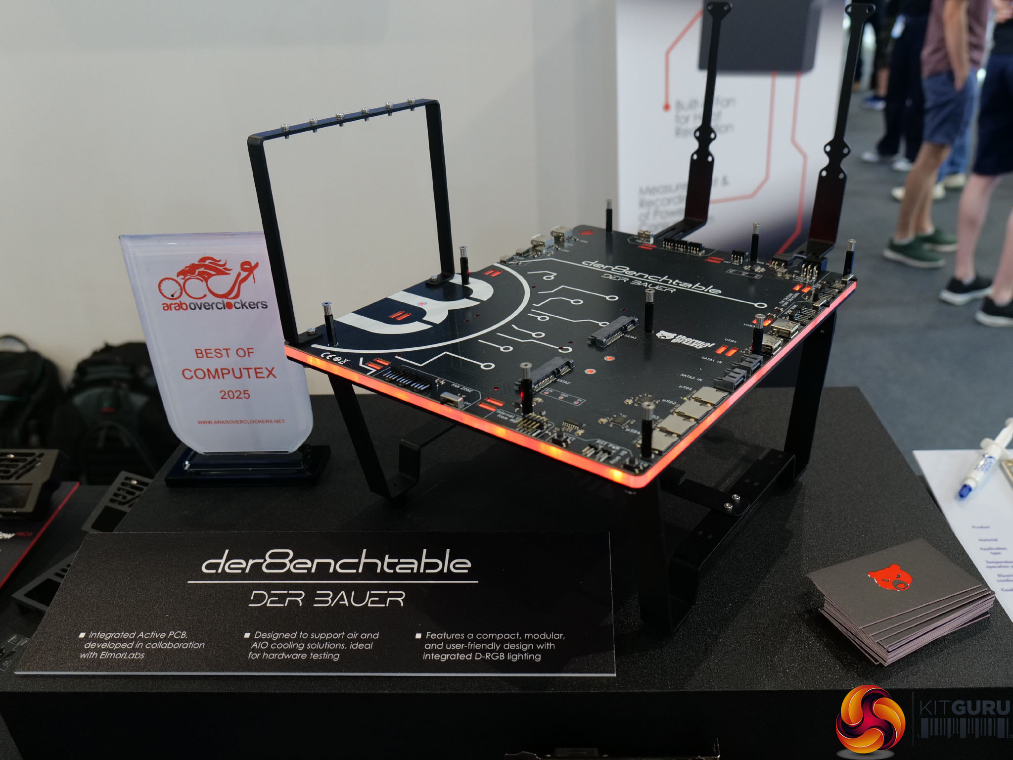 Also debuting is the der8enchtable, a modular, user-friendly benchtable featuring an integrated active PCB and D-RGB lighting. The active PCB includes numerous features that significantly simplify and accelerate PC hardware testing. It is designed to support air and AIO cooling solutions and is ideal for hardware testing. This is less aimed at the general consumer and more towards content creators, extreme overclockers, modders and other professionals. Like the name implies, the table is designed in collaboration with der8auer, as well as ElmorLabs.