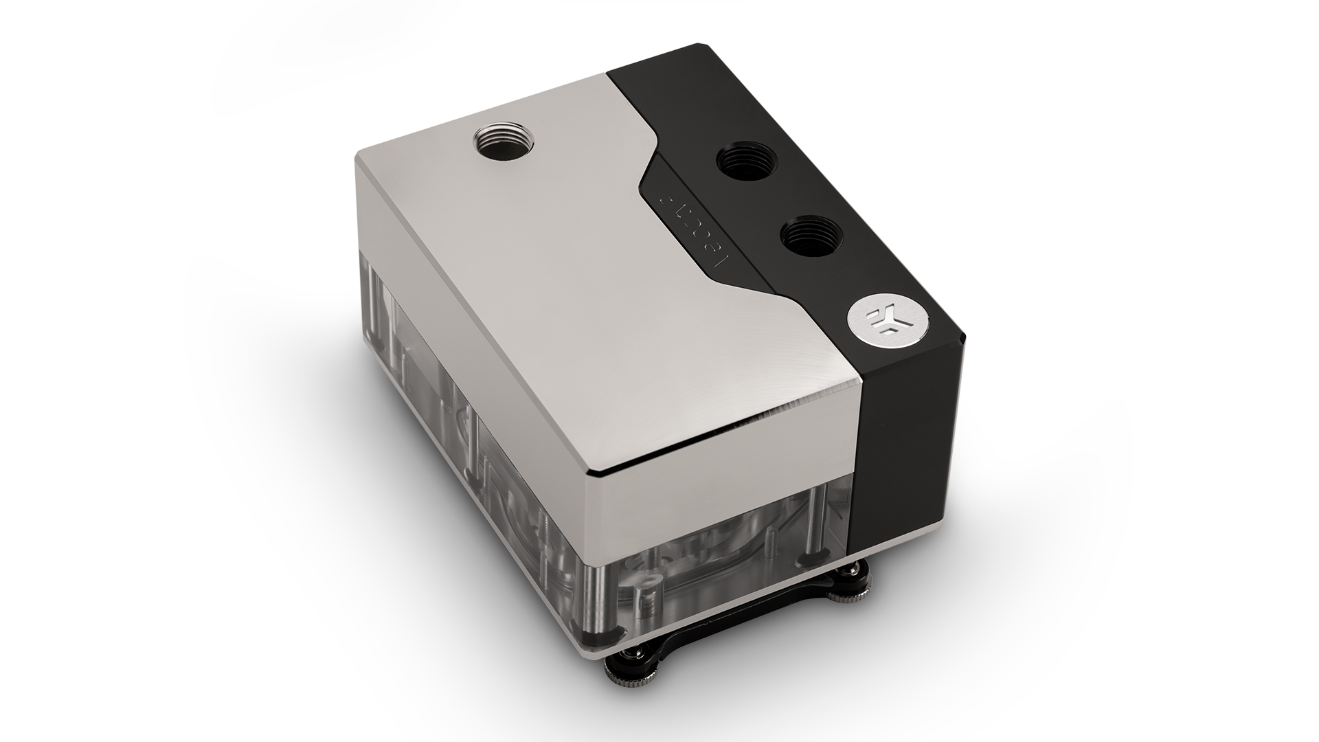 For starters, one of the main stars of the show will be the new EK-Quantum Velocity2 Kinetic DDC 4.2, which integrates a DDC 4.2 pump into a CPU water block. The water block combo comes with a nickel-plated brass top, an acrylic piece that carries the cooling engine components and handles all the coolant distribution inside the water block, and an acetal piece that has four connection ports.