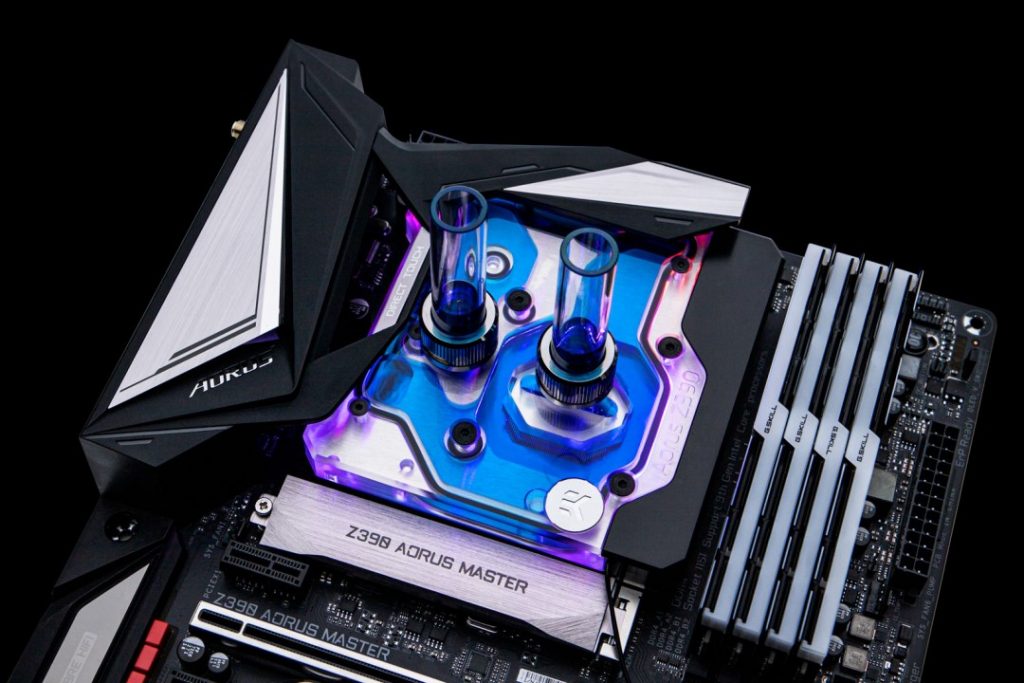 The final block on the list is the EK-Momentum for the Gigabyte Aorus Z390 Master motherboard. We've seen similar monoblocks designed for high-end ASUS ROG boards in the past and now there is one for the Aorus Master and Ultra Z390 motherboards. The block uses addressable RGB LEDs for an extra touch of customisation, which syncs with Gigabyte's RGB Fusion software.