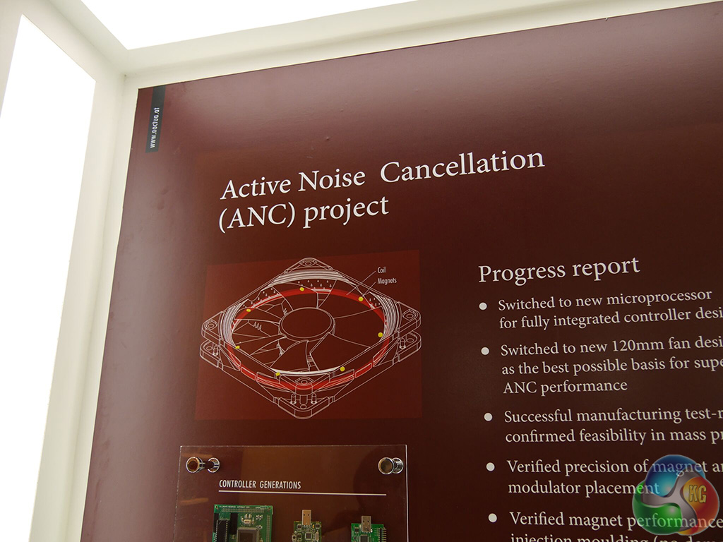 One more thing Noctua is working on is ANC, or Active Noise Cancellation, this was announced a while back but is making a return alongside the new A-series fans. The technology has now shrunk to the point where it can fit inside the fan hub, which means it may be closer to coming out.