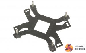 The back plate can then be fitted to the rear of your motherboard, with the longer screws passing through the mounting holes. Four plastic spacers can then be fitted atop the mounting screws, and there are a couple of rails which then need to be placed atop these pillars. Four screws can then secure the rails in place.