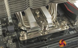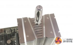 The included long screwdriver then comes into play, there is a small pass-through running down the cooler for you to access the more central screw which is nice and convenient, and the second mounting screw easily accessible at the “front” of the cooler. With the cooler firmly mounted, you just need to add the fan to the front with the included clips and plug the 4 pin PWM connector into your motherboard CPU fan header.