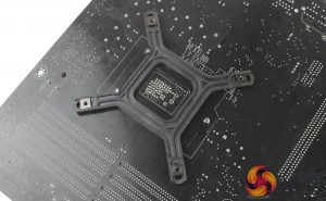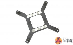 Starting installation with the backplate, this is actually the simplest stage of the process. All you need to do is fit it to the rear of your motherboard, and there are a couple of adhesive tabs to hold it in place.