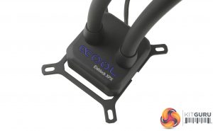With the backplate in place, we can move onto the CPU block where you start by attaching the two-piece top mounting bracket. These slide onto the block and click into place.