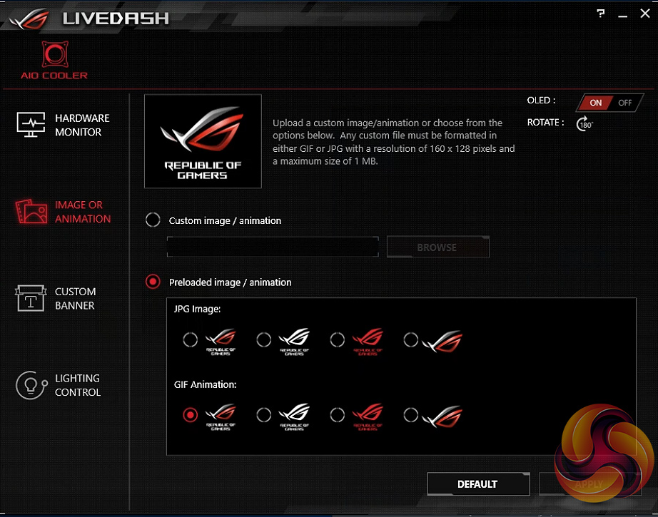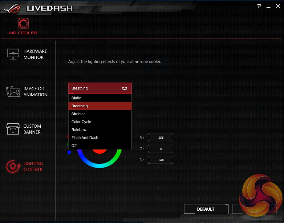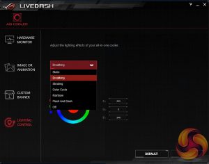 The OLED screen and RGB LEDs are all controlled through a separate software package called Live Dash. This does provide a load of customisation options – you have a number of effects to choose, including static, breathing, strobing, colour cycle, and rainbow lighting modes.