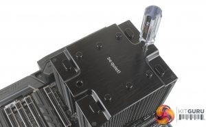 Thermal paste can then be applied (we chose not to use the paste included so that we can maintain some consistency with future TR4 cooler testing) and position the cooler above your CPU. There is a third metal bracket which needs to be passed through the centre of the cooler and lined up with the two available mounting holes. The screws are affixed to the bracket with a couple of rubber washers so they don’t fall out, which is also helpful.