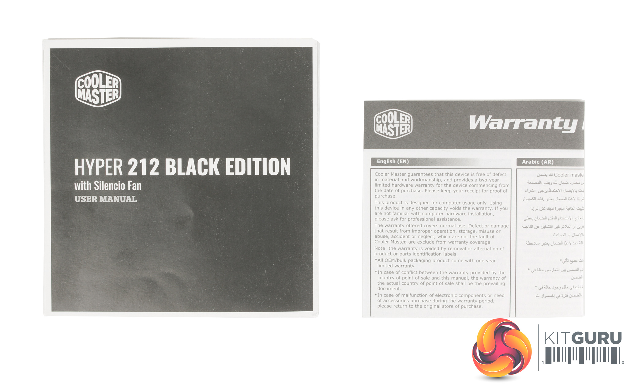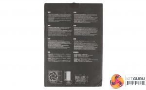 Packaging follows the same aesthetic as Cooler Masters other current products with smaller purple accents, and the front featured a large image of the new all blacked out cooler. The rear of the box lists a couple of the coolers key features, as well as details of dimensions to help with confirming compatibility.