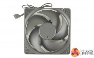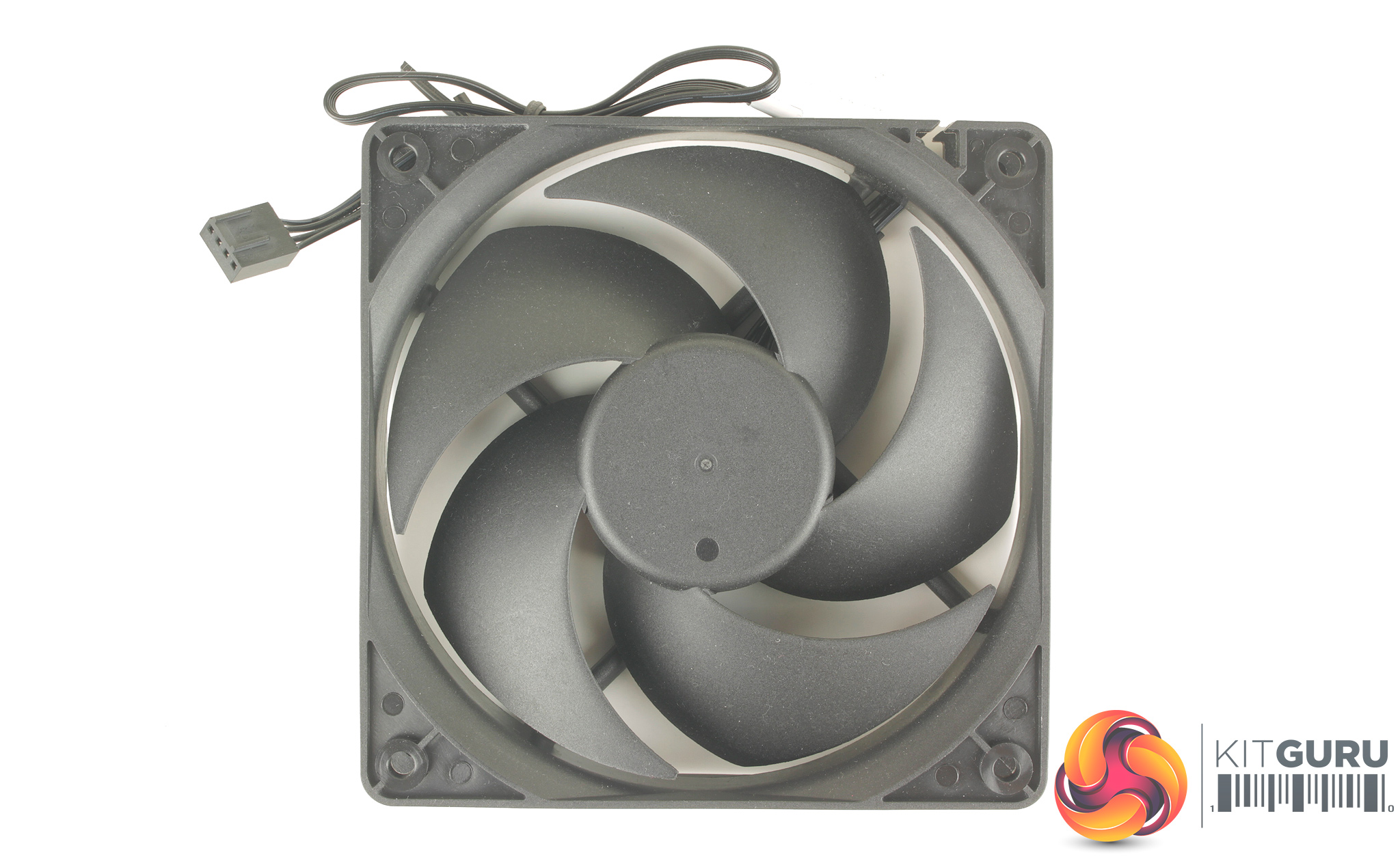 The included fan for the Black edition is a 4 Pin PWM Silencio FP120, all blacked out with a nice big blade design which looks a bit like it's been included for higher static pressure rather than airflow. It's worth noting that the Silencio FP120 is available as a standalone part from Cooler Master which would make it very easy to upgrade to a push-pull configuration with the included additional fan mounts and splitter cable.
