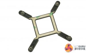 The required back plate is basically pre-setup with slidable motherboard pass-through’s, so you simply need to adjust them to fit. An adhesive pad is also there to hold the back plate in place when flipping the motherboard over.