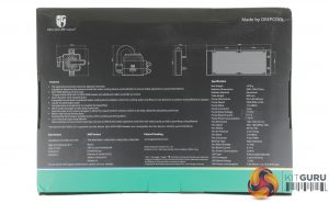 The rear of the box included some more detailed information on the dimensions of the cooler and its full specification.