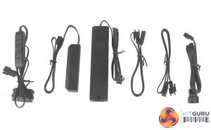 Inside, we find a large accessories box filled with mounting hardware for current Intel and AMD mounts, along with a number of RGB adapter cables, RGB controller, and two control hubs. There's one hub for the lighting and another for the fans, allowing you to connect up to four 4-pin PWM fans, while the LED hub allows you to connect up to 6 LED devices.