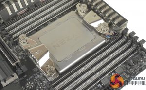 As the Gamerstorm Fryzen cooler is compatible with more than just the TR4 socket, you do get a back plate and a number of parts for sockets like AM4 and AM3. For TR4 you start with the four double threaded standoffs, which need to be screwed into the socket mounts.