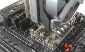 There is a large bracket preinstalled which passes through the center of the cooler, so it’s just a case of lining up the two screws, with the holes on the now installed bracket.