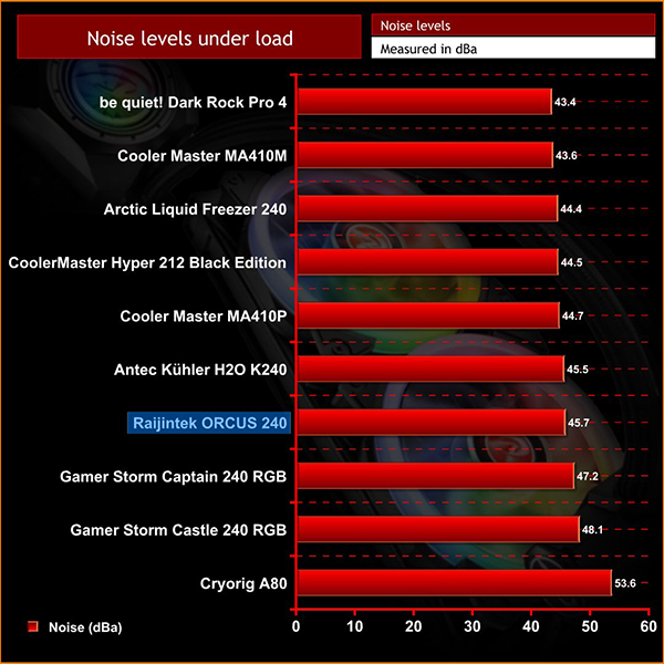 These better temperatures do come with the sacrifice of higher noise in operation, as the Orcus 240 is a little louder at 45.7 dBA which is where on paper it falls a little shorter, but again only by a few decibels when compared to say the Dark Rock Pro 4. Overall some pretty impressive results.