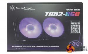 Taking a look at the box front, it shows a pretty large picture of the cooler itself, along with a QR code, which is included for easy access to online installation instructions. The rear of the box includes a small breakdown for some of the key features of the TD02-RGB. It is worth noting that no instructions are included in the box, so you will have to head over to SilverStone's website, or scan the QR code.