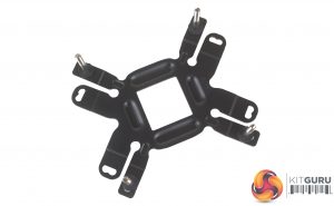 Four plastic standoffs can then be installed over the mounting screws. These also use a pressure fit and lock the backplate in place. Thermal paste can then be applied, and the CPU block placed on top of the processor. Four sprung thumbscrews can then be threaded onto the mounting screws and tightened.