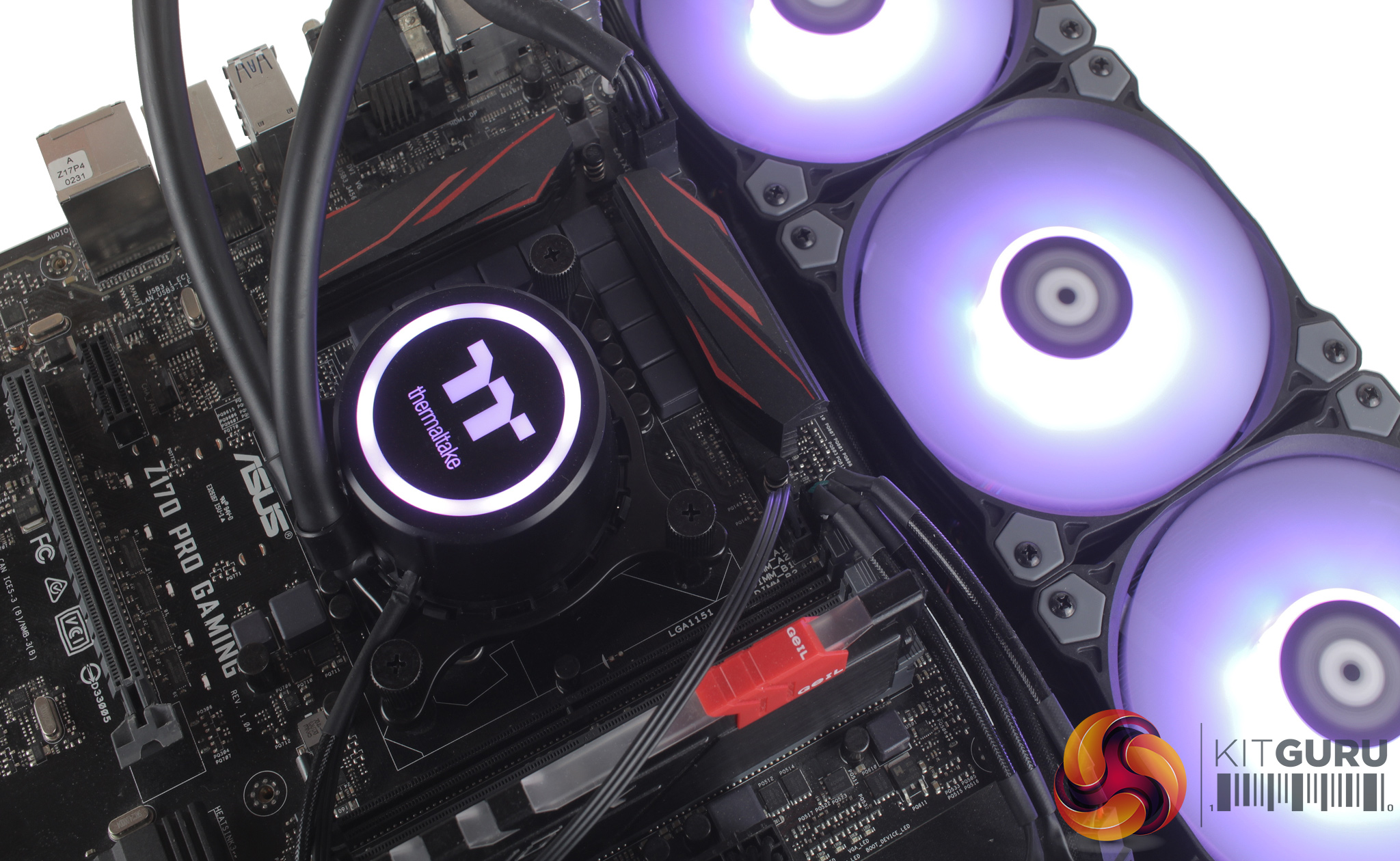 For our testing, the lighting was controlled through the included controller, and the first thing to say is that there are a number of different preset effects to choose from – including flow, ripple, pulse, blink, wave, static and the full RGB spectrum. Transitions, thanks to the addressable nature of the RGB LEDs, are nice and smooth, and pretty seamless really. The sheer number of LEDs – across the pump and three fans – definitely gives the cooler a wow-factor.