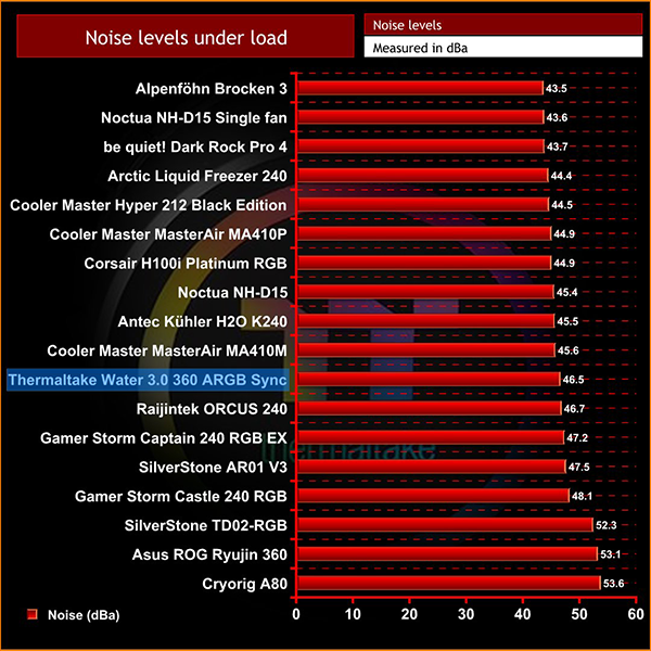 Although we have tested some quieter coolers, the Water 3.0 360 ARGB still offers reasonable acoustic performance. Although the Ryujin found itself running cooler in our 5GHz testing, the trade-off is that it produces significantly more noise.