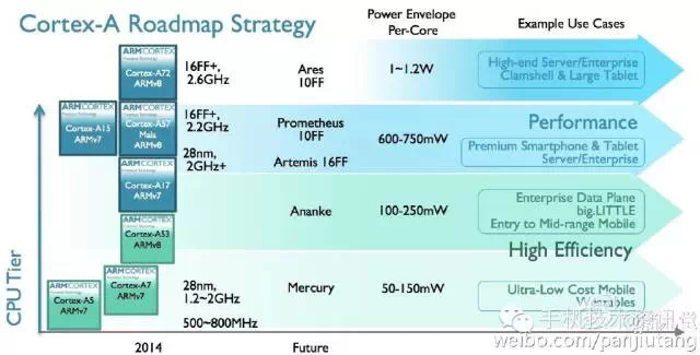 Not a lot of information is known about ARM’s new-high-end general-purpose cores. What we do know from a leak of an ARM’s roadmap is that the company is working on two high-performance designs code-named “Ares” and “Prometheus”, which are developed for 10nm Fin-FET process technology. It is highly likely that both are based on the ARMv8.1-A architecture, but this is not something officially confirmed by ARM. The code-named “Ares” cores with up to 1.2W thermal design power per core will be used inside application processors for high-end mobile devices as well as servers, whereas the “Prometheus” cores (with 0.75W TDP per core) are designed for premium smartphones and tablets.