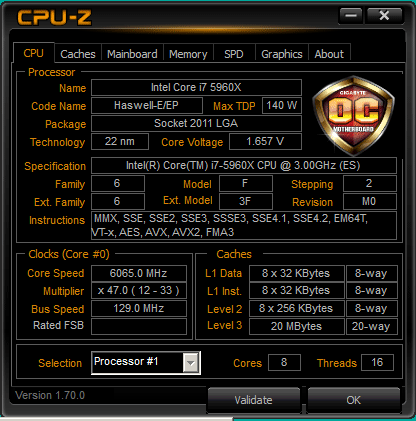 Der8auer, an overclocker from Germany, on Monday overclocked his Core i7-5960X microprocessor from 3.0GHz to 6065MHz, based on his submissions on Hwbot.org, a web-site that overclockers use to share their overclocking results. It is especially noteworthy that all eight cores and the Hyper-Threading technology remained active, as a result, the chip could demonstrate record performance in various applications.