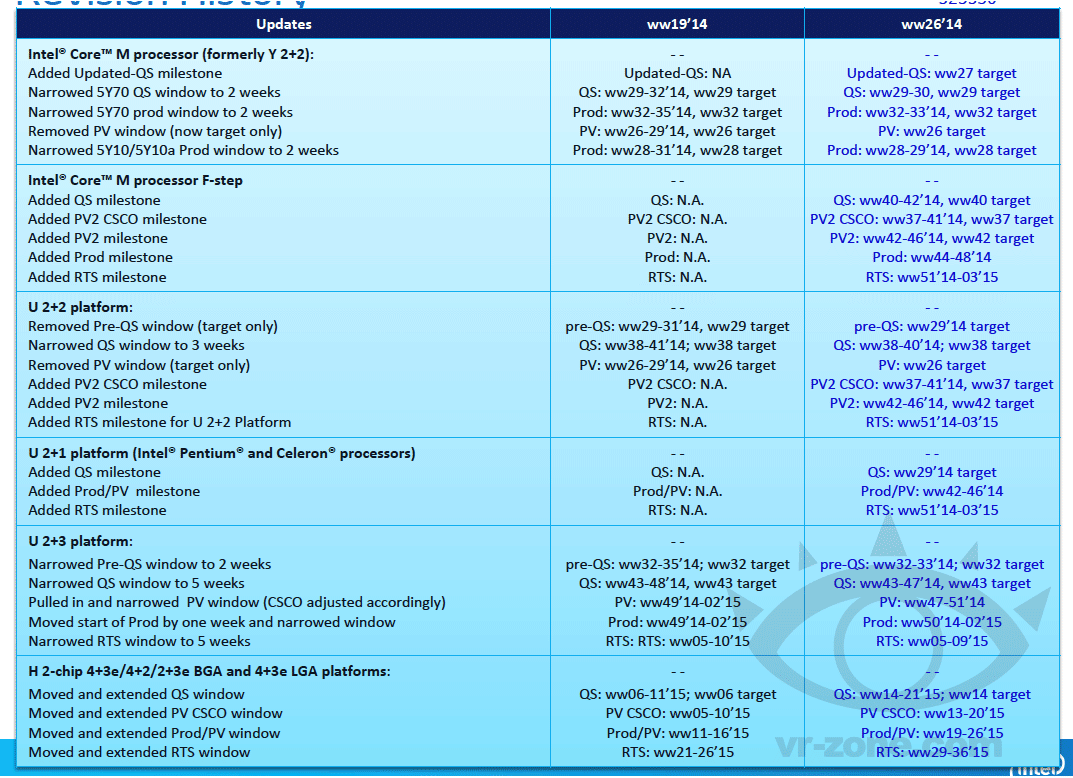 For an unknown reason Intel decided to postpone the launch window of the Core M “Broadwell” microprocessors to the ww51 2014 – ww03 2015 (late December – late-January) from the ww37 – ww40 (September, 2014), according to a new schedule published by Chinese VR-Zone web-site. If devices based on the Core M central processing units emerge on the market on the 51st week of the year (late December), they will only be available in retail for no more than a couple of weeks in calendar 2014.