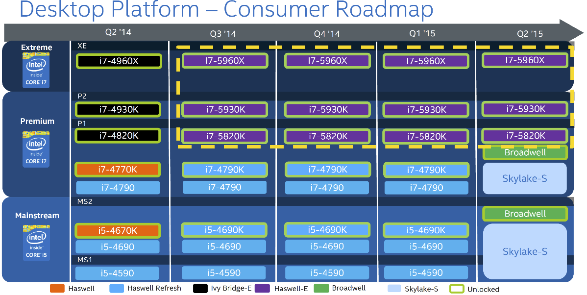 KitGuru Says: At present Intel’s roadmap looks somewhat illogical when it concerns high-performance solutions for client PCs. The Skylake platform simply must be more advanced than the Broadwell platform and the former is currently expected to be released in the second quarter of 2015, at least several weeks ahead of the Broadwell-H. Intel is expected to artificially position the Broadwell-K unlocked chips above the Skylake-S products. While this would work if Intel releases the chips simultaneously, it will unlikely work if the Broadwell-H/Broadwell-K are significantly late. Once PC makers start to adopt the Skylake-S in the Q2 (which means that the majority of their back-to-school systems will feature the Skylake-S), they and Intel will start to advertise the advantages of the platform, which will inevitably lower demand for the Broadwell chips. Perhaps, it is logical for Intel to simply cancel the Broadwell products for high-end systems and focus on Skylake? Of course, if the Skylake is healthy.