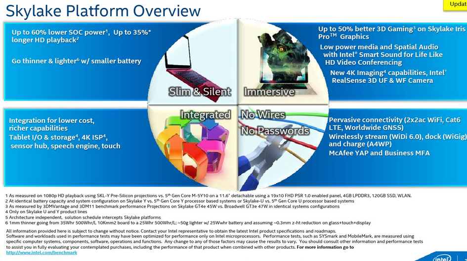 Intel Core M “Broadwell” processors already feature impressively low power consumption, but the upcoming Core M “Skylake” chips will sport not only all-new micro-architecture, but also even lower power consumption, according to an excerpt from Intel’s document.