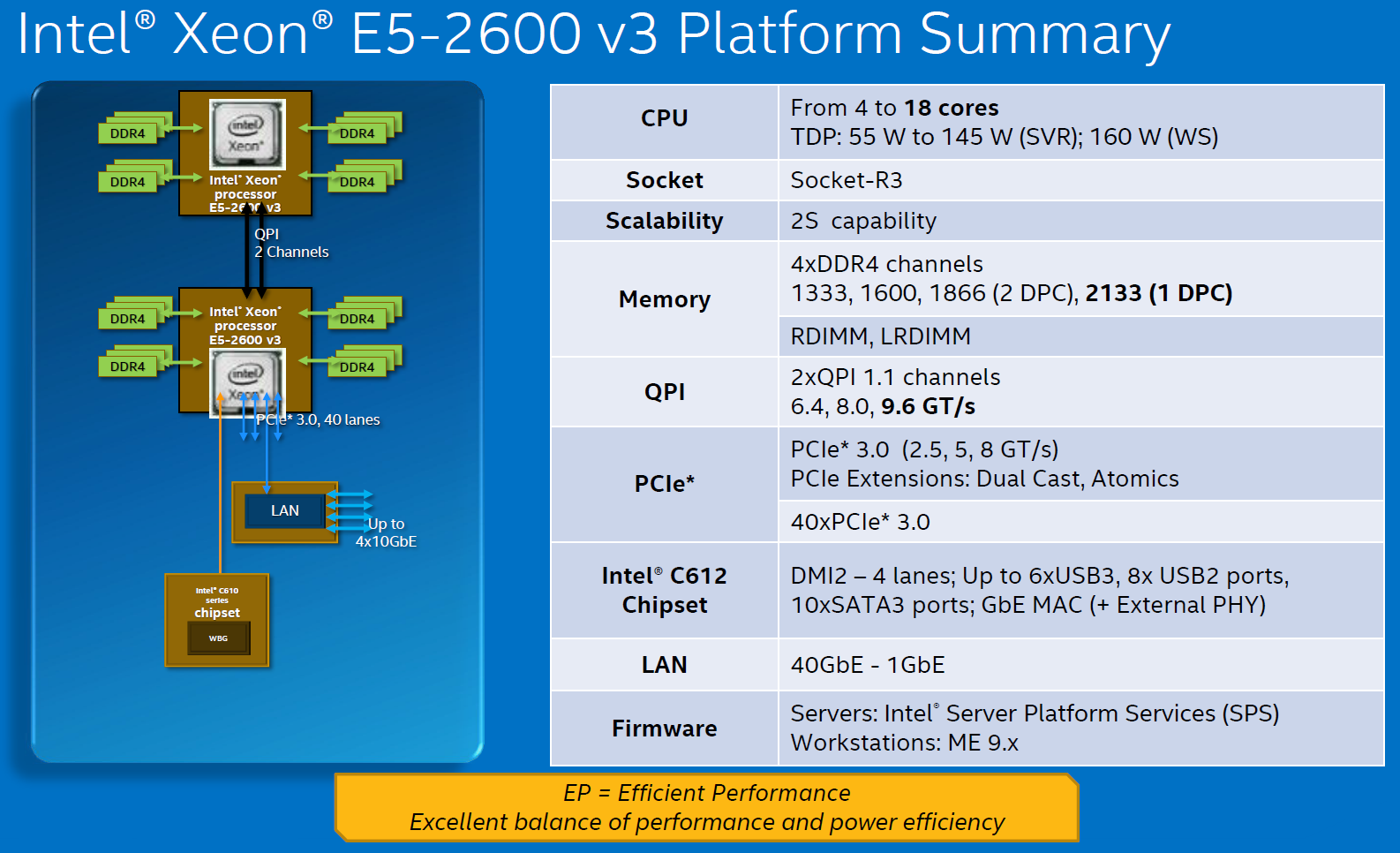 Intel Corp. on Monday rolled-out its new Xeon E5 2600/1600 v3 server processors based on the code-named “Haswell” micro-architecture. The latest server central processing units feature up to 18 cores per chip and quad-channel DDR4 memory controllers, whereas the new C612 platform code-named “Grantley” features a number of innovations that will be available on the market of 2-way servers for the first time.