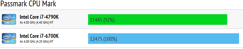 Passmark result for 6700k is wrong… These are the correct values: http://www.cpubenchmark.net/high_end_cpus.html and http://www.cpubenchmark.net/singleThread.html (4790k is the King!)