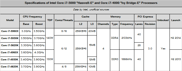 Intel Core i7-5800/5900-series microprocessors for enthusiasts will rely on Intel X99 platforms and will require DDR4 memory modules. The new chips will be formally introduced on the 29th of August, 2014.