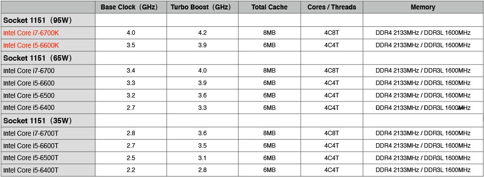 There will be three types of Intel “Skylake-S” processors for desktops: with 95W, 65W and 35W thermal design power (TDP) aimed at different classes of PCs. The highest-performing tier of “Skylake-S” with 95W TDP will include only two models with unlocked multiplier: Core i7-6700K and Core i5-6600K. The mainstream “Skylake-S” range with 65W TDP will include four SKUs: Core i7-6700, Core i5-6600, Core i5-6500 and Core i5-6400. The low-power “Skylake-S” family for desktops with 35W TDP will also include four models: Core i7-6700T, Core i5-6600T, Core i5-6500T and Core i5-6400T. Eventually the line of “Skylake-S” products will add more processors, including more affordable Core i3, Pentium and Celeron offerings.