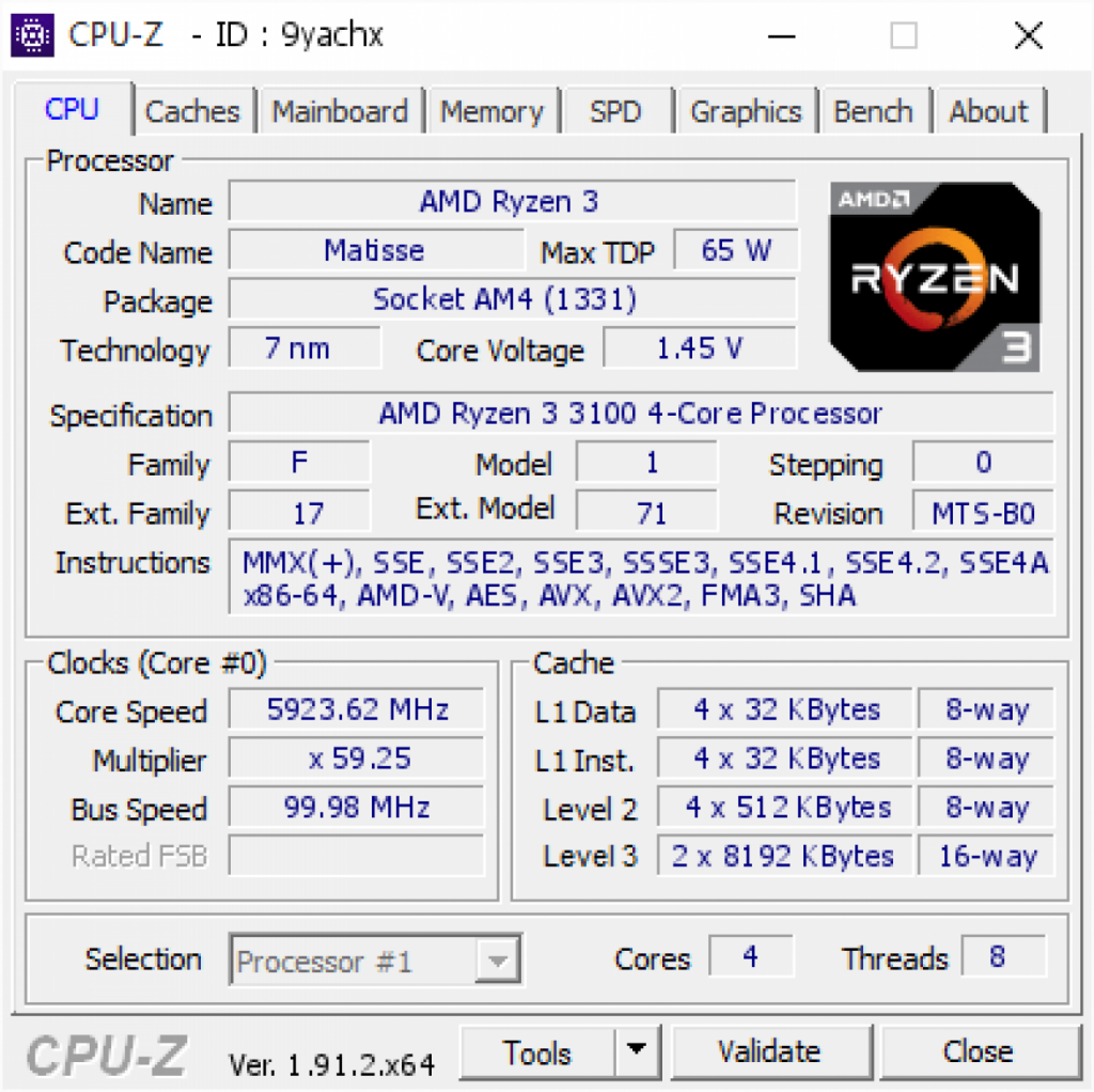 AMD's Ryzen 3 3100 was designed as an entry-level CPU, offering a good price to performance ratio, but with lower clock speeds than the 3300X. That said, TSIAK, a Taiwanese overclocker, was able to push his AMD Ryzen 3 3100 to 5923.62 MHz.