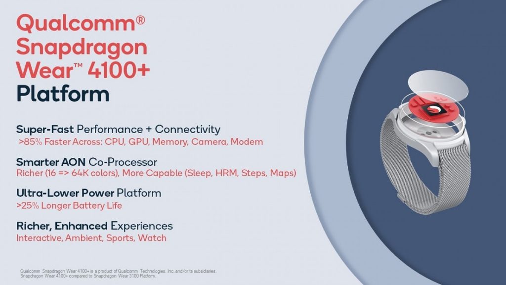 Additionally, the Wear 4100 supports Wear OS by Google and its AON Co-processor is capable of handling up to 64K colours. Qualcomm also claims an “85% increase” in performance across the CPU, GPU, Memory, Camera and Modem – in short, a noticeable improvement for most components of the platform. Products based on the new 4100 are expected to start finding their way out to the market later this year.