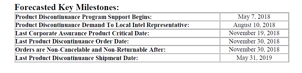 Intel revealed the news in its latest support document, which lists the key milestones for the Kaby Lake-X processor, beginning with its May 7th discontinuation. Last orders for the products will be conducted on November 30th, leading into the last shipments sent out May 31st 2019.