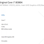The Core i7-8086K appears to have a base clock of 4.0 GHz straight out of the box, boosting to around 5.00 GHz across its 6 cores / 12 threads. Based on Intel’s 14nm Coffee Lake-S architecture, the celebratory CPU will supposedly sport Intel’s UHD630 integrated graphics, a 95W TDP and a 12MB L3 cache.