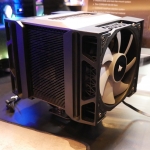 Corsair has been out of the CPU air cooling market for a long time but is making a return this year with the new premium high-end A500 CPU tower cooler. Corsair has implemented an innovative fan mounting design in the A500 that allows adjustment for RAM clearance. The A500 fans are mounted in ratchet sliding frames to provide almost unlimited RAM clearance and eliminate the fiddly spring clip fan retention system other vendors use.