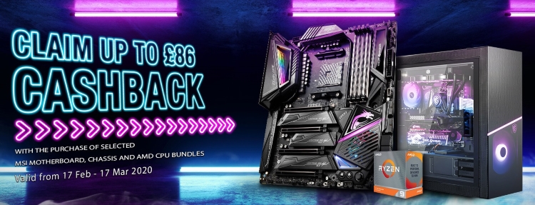 During the next few weeks, MSI will be running a promotion that offers customers cashback on purchases of participating AMD motherboards, AMD Ryzen CPUs and/or MSI PC cases. Depending on the combination of components purchased, customers will be eligible for up to £86 cashback via a refund process.
