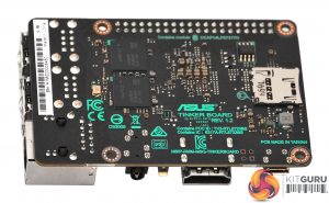 The main feature on the bottom of the PCB is the slot for the MicroSD card. ASUS recommends at least 8GB capacity for installing an operating system, applications, and your own custom code.