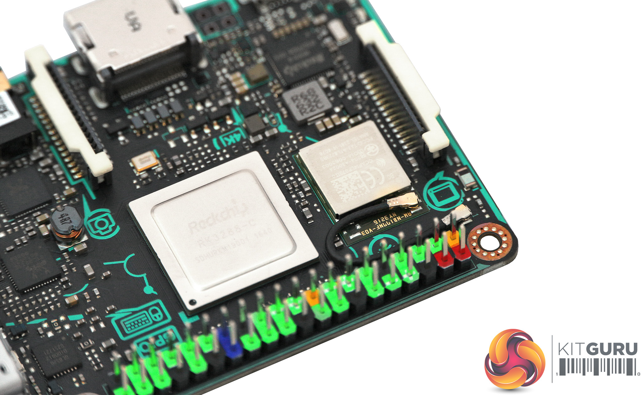 On the other longer edge there's the Micro USB connection for providing power, which should be 5V 2A. You need this much, too. We tried a USB port that didn't supply this much power and the Tinker Board wouldn't boot. Next along is full-sized HDMI connection with support for 4K screens at 60Hz, although this depends on operating system capabilities.