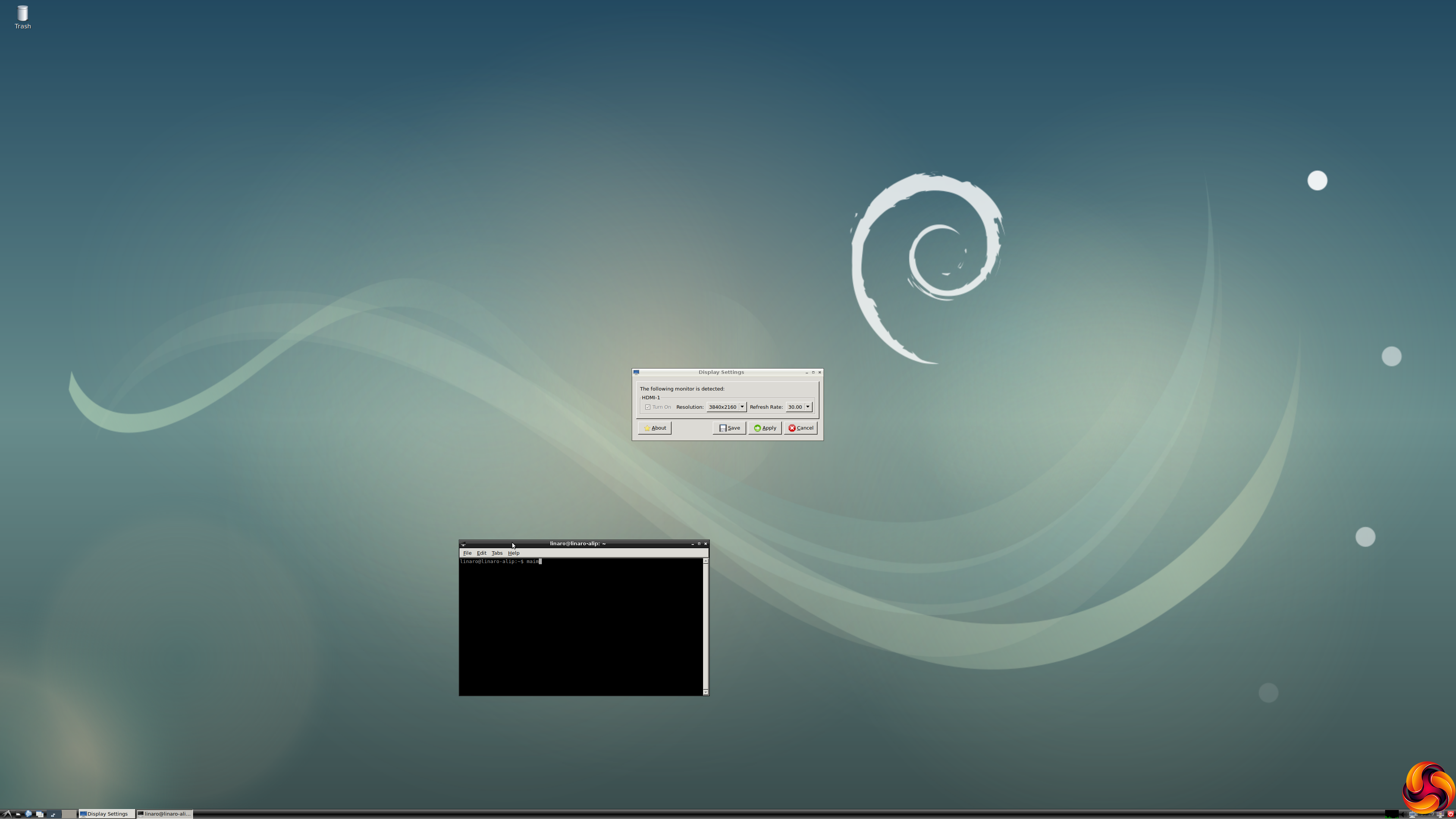 Monitor resolutions up to 3,840 x 2,160 are supported. However, Debian doesn't appear to be as aware of the effects of such high resolutions as Windows 10 and MacOS on GUI usability, as the text becomes stupidly small at this resolution.