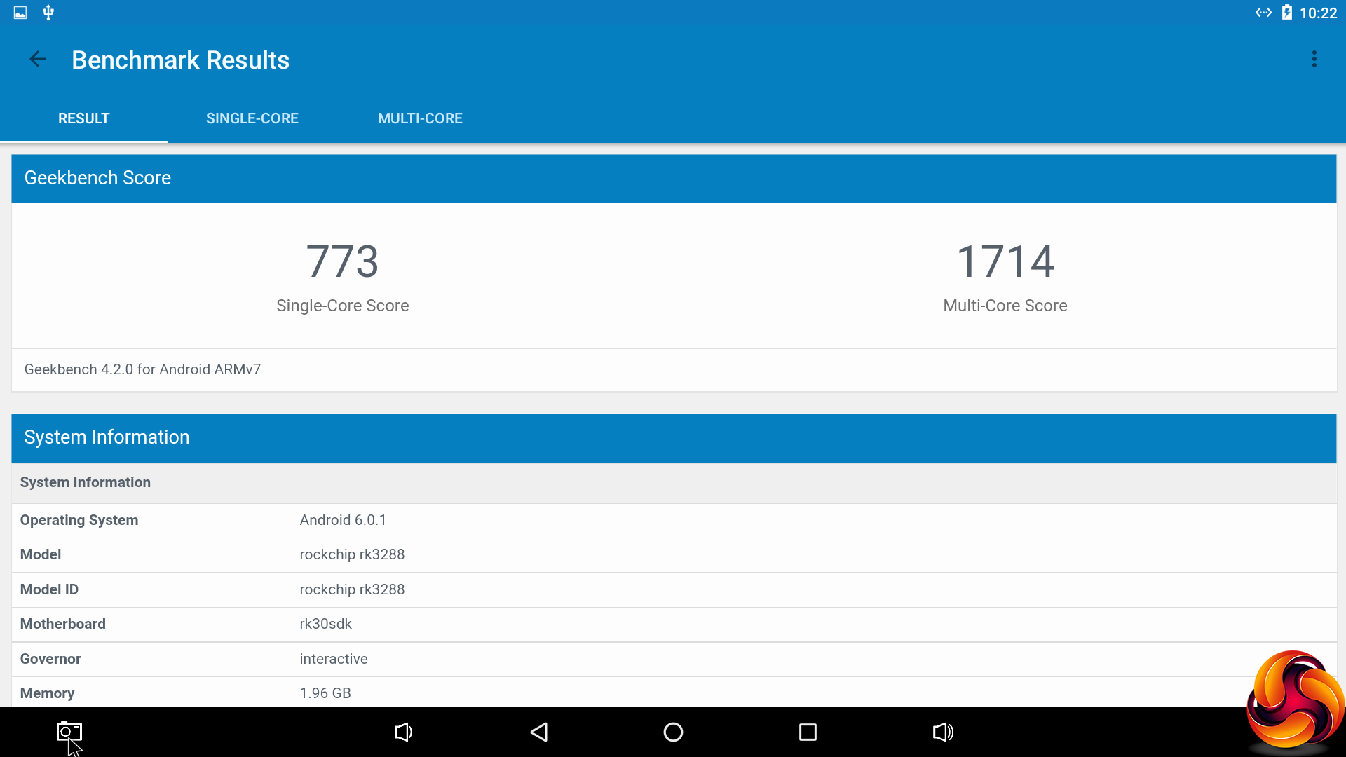 One of the selling points of the ASUS Tinker Board is its performance, so we ran Geekbench 4 on TinkerOS Android (since we were able to install it…) to see how it shapes up. Geekbench contains a range of synthetic tests that are designed to simulate the kind of loads you will encounter during everyday tasks. The CPU test outputs a single-core and a multi-core result.