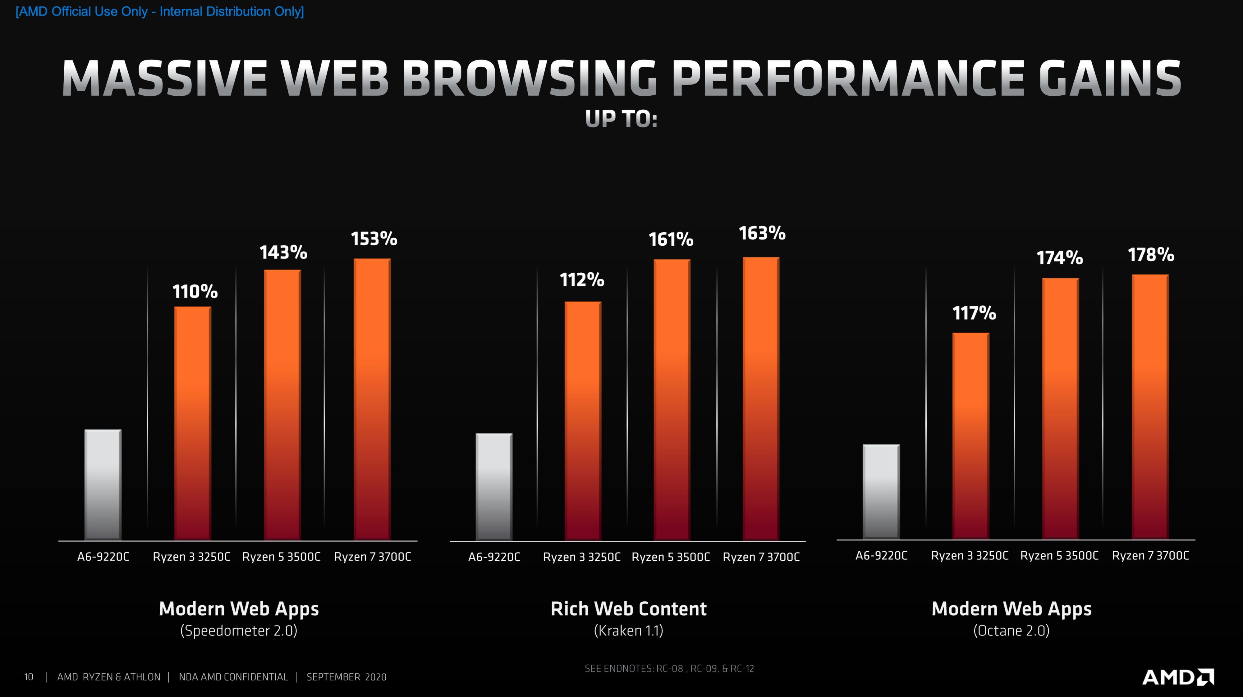 Thanks to their power efficiency and premium performance, the Ryzen 3000C CPUs “enable thinner and lighter Chromebook designs that deliver long battery life as well as Wi-Fi 6 and Bluetooth 5 capabilities for enhanced connectivity”.