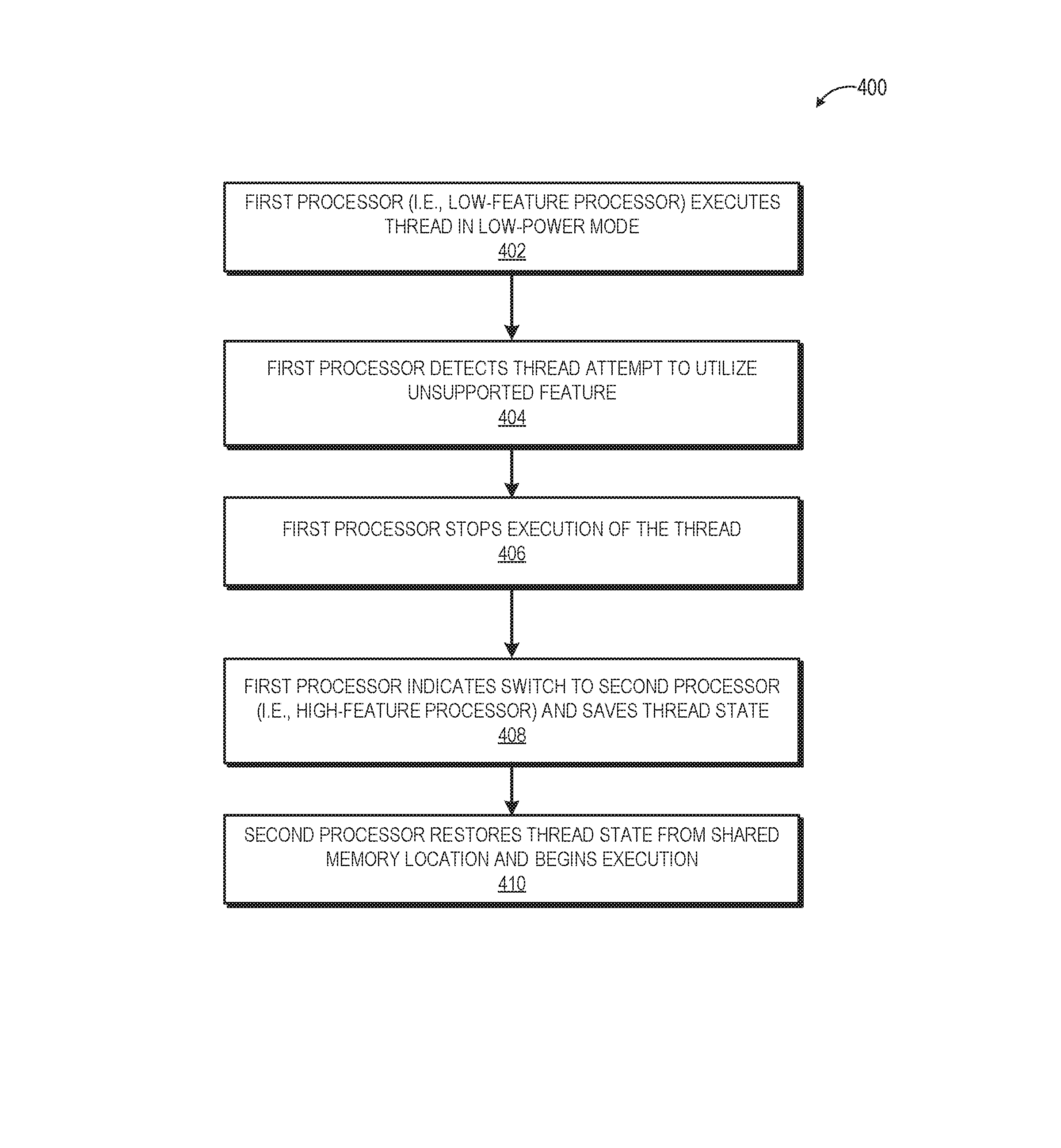 The AMD patent, shared by @Underfox3, refers to an “instruction subset implementation for low power operation”. This implementation would be made on a heterogeneous processor, allowing the subset to be executed on both the high-feature and low-feature processor, depending on the task's needs. Heavy tasks would be assigned to the high-feature processor, while the low-feature one would be handling low-performance tasks. If a core wasn't being used, it would be turned off to reduce power consumption.