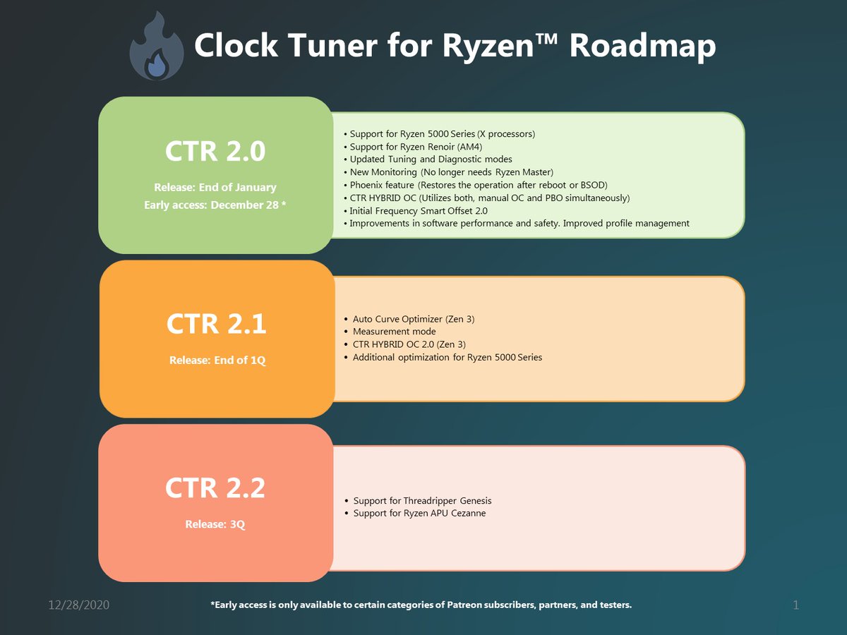 The slides from Yuri (aka as 1usmus) shared by Guru3D describe each new feature and come with a roadmap for the upcoming version of CTR, with the respective release dates. The CTR 2.0 is coming out at the end of January of 2021, but early access has already started.