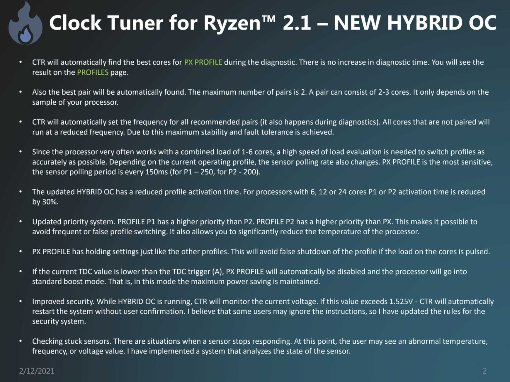 Other features coming with CTR 2.1 include reduced profile activation for CPUs with 6, 12, or 24 cores by up to 30%, updated profile priority system to prevent unnecessary profile switching, improved security, and a stuck sensor checker.