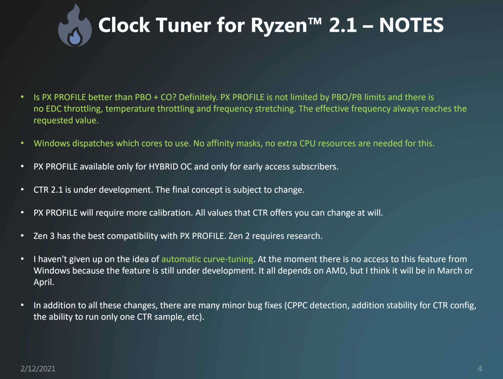 As CTR 2.1 is still under development, some announced features are still subject to change. For now, it seems that the PX profile only works with Zen 3 processors as Zen 2 still “requires research”. Although 1usmus has previously said that CTR 2.1 would come with an automatic curve optimizer, he can't add it because there's no way to access it through Windows.